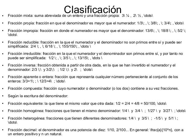 Fracciones positivas: concepto, usos, clasificación formas de representación,